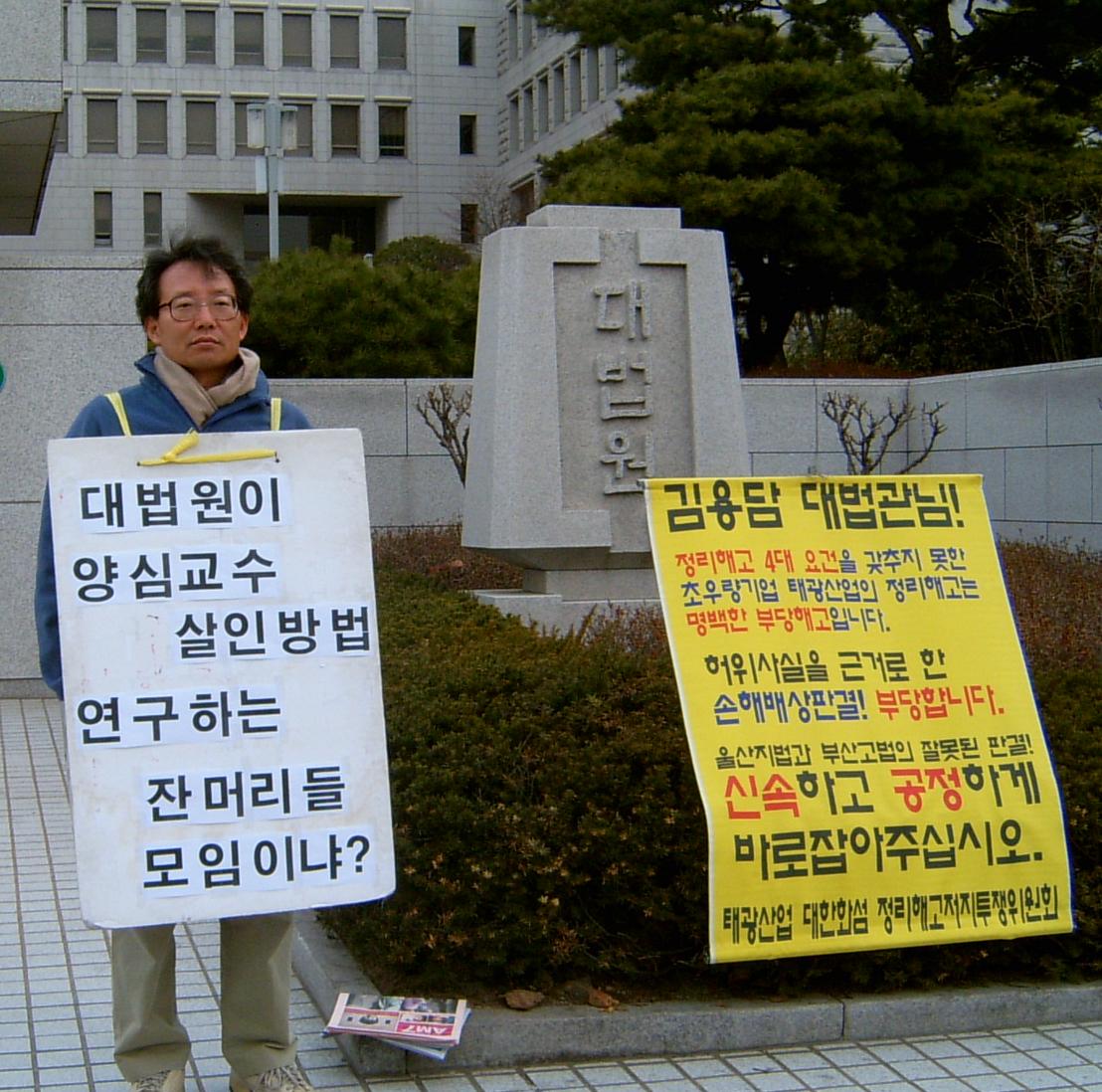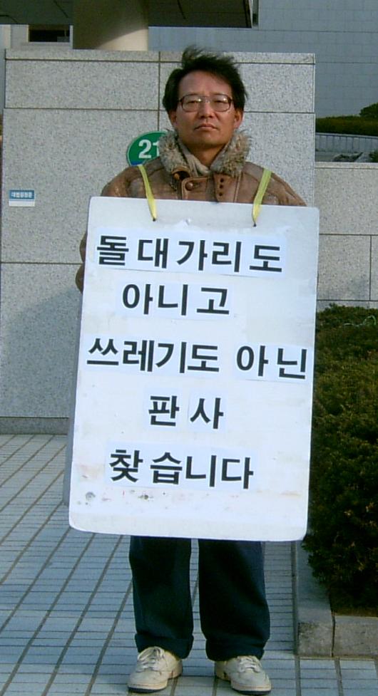 성문법 묵살하고 대법원 '주둥이'를 법으로 받드는 판사년놈들에 대한 나홀로 시위로서