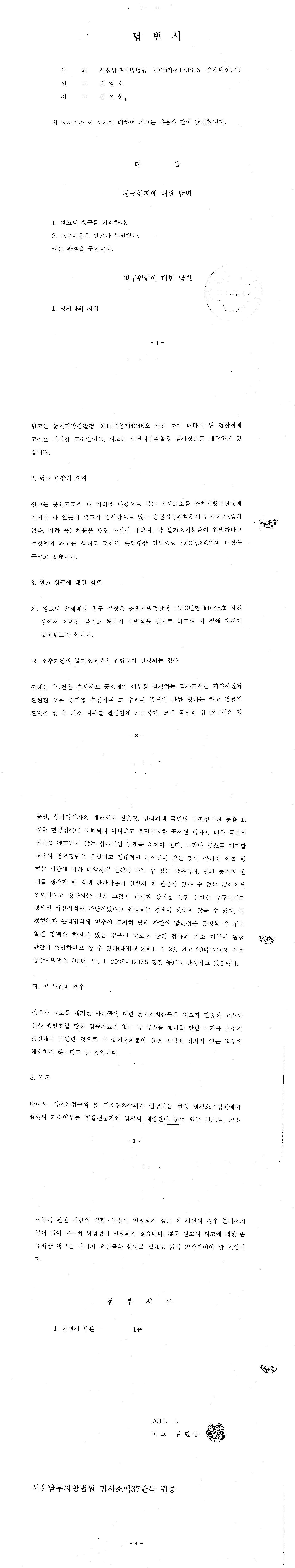 [2011.01.17] 피고 김현웅 답변서 제출