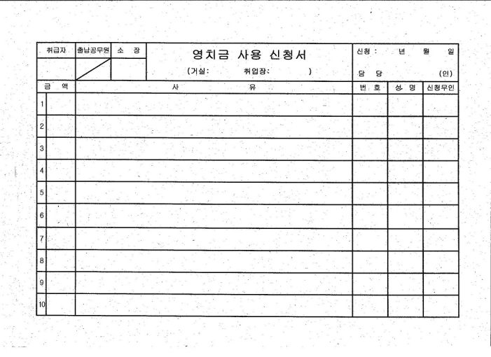 영치금 사용신청서(* 교도소에서는 수용자가 매점으로 부터 바로 구입할 수 없게 되어 있다. 이 신청서에 구매할 품목을