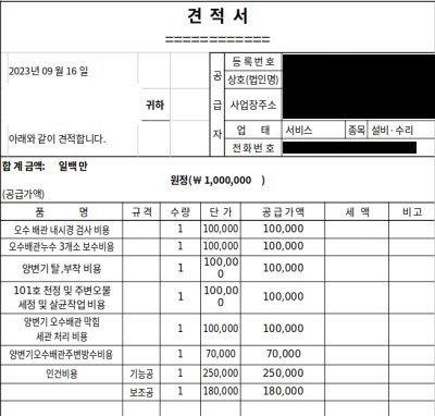 2) 일반적인 수리 견적서 기본틀은 사용된 부품 값 + 공임인데...