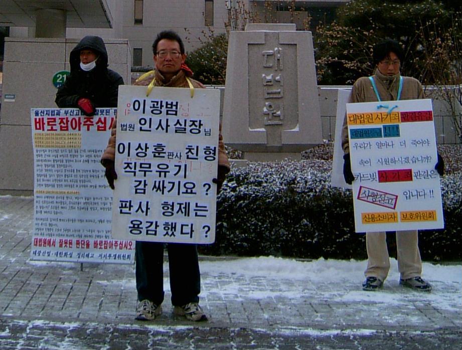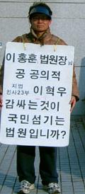 소문~ 국정감사때, 어느 국회의원이 "1인 시위하는 사람들의 얘기나 들어보기나 했냐?"라고 대법원장에게 질의했다고.