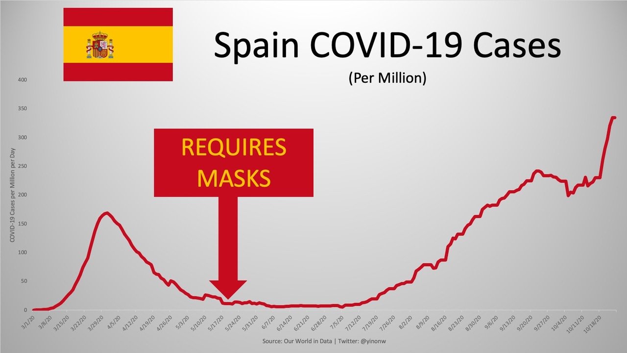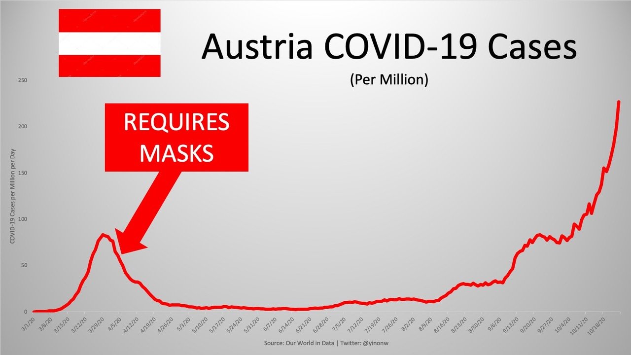 아래 마스크 효과 통계 자료(federalist, 20.10.29) 봐라