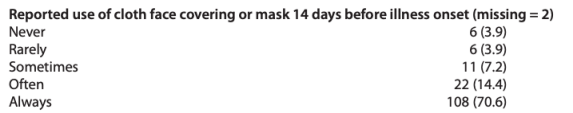 감염자 대상으로 마스크 착용 조사한 미국 질병본부(CDC)에 의하면(그림 참조),