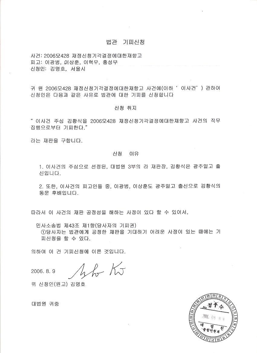 1. 이용훈, 이광범 허위공문서 작성 각하에 대한,