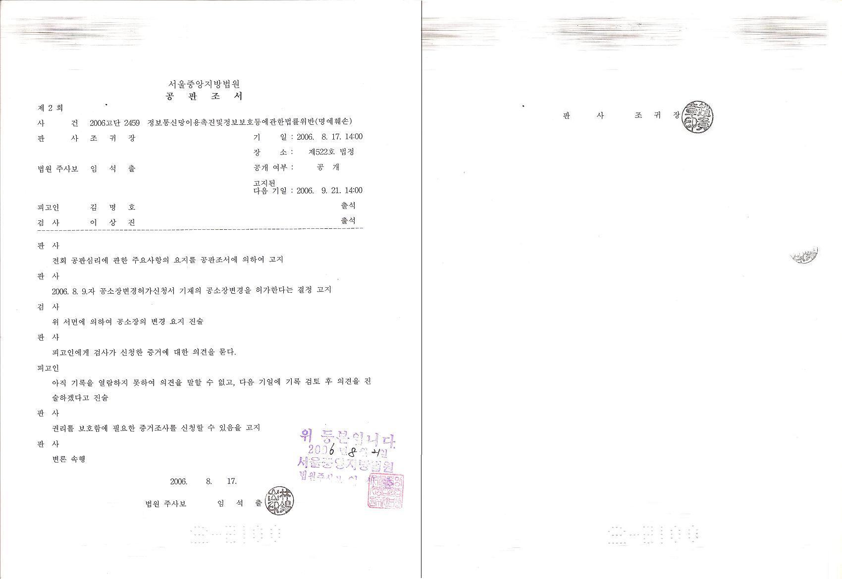 이상훈의 직권남용으로 인하여, 소장접수(2005. 10. 18.) 후, 6개월 가까이 지난 후에야 첫 재판이 열린 것입니다.
