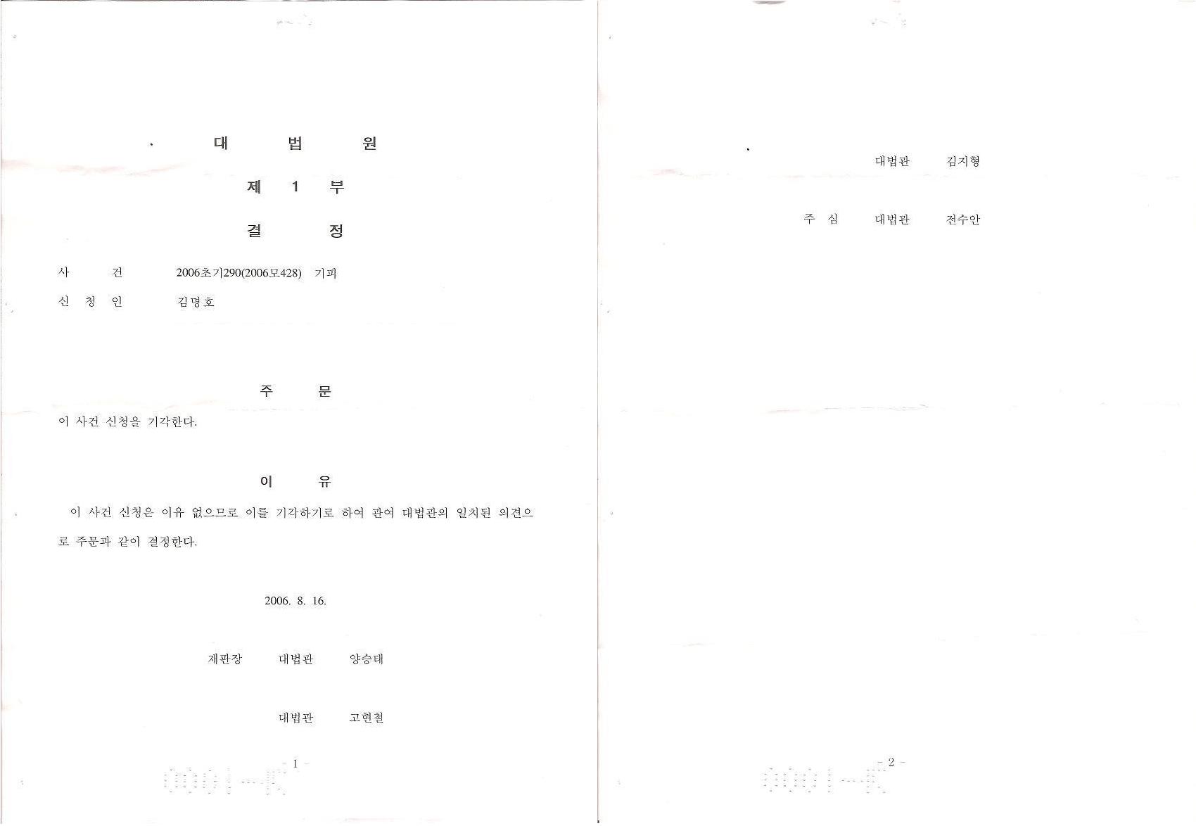 6월 2일 제출된, 특별항고 사건 대법원에 접수(사건 번호: 2006그99,