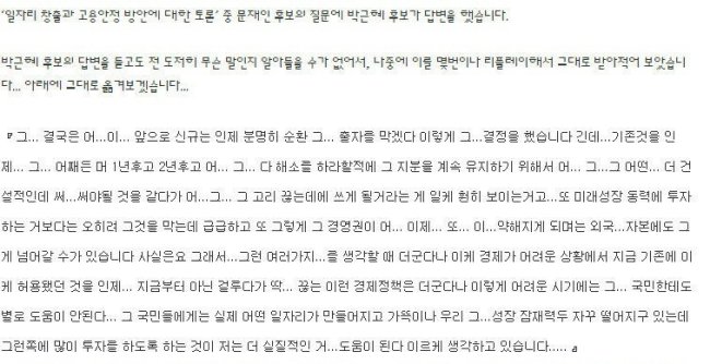 어떤 병신들은 말을 하지 않는 박근혜가 과묵해서 무게가 있단다. 등신들도 가지 가지. 요즘 박근혜가 뻥긋만 하면 헛소리 튀어나오는 걸 보고도 그 딴 소리가 나오냐?