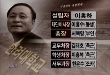 ▲이홍하가 세운 한려대는 동생과 부인,조카와 측근이 운영했다. 출처:MBC 뉴스캡쳐