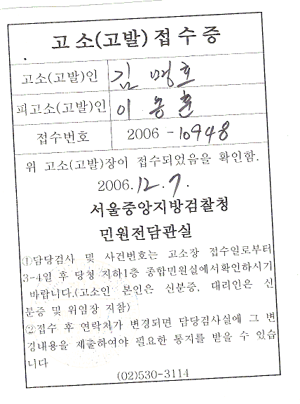 (3) 고발인은 판사들의 명예를 훼손 하였다는 사유로, 2006년 5월 30일 대법원경비 대장 전금식으로부터,