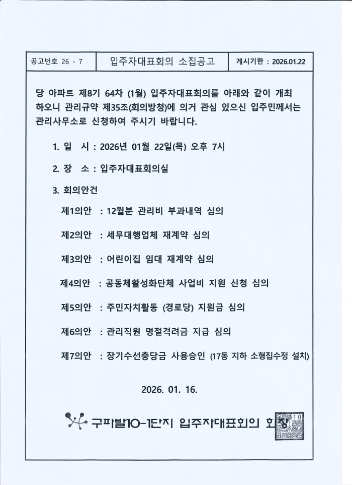 2. 입주자 대표회의 방청기(2.20일 오후 7-9시)