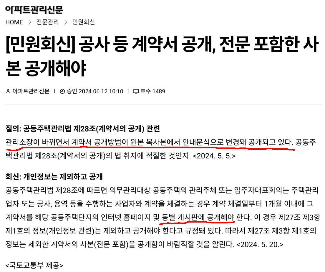 가. 관리사무소에 보관되어 있는 계약 및 증빙서류들 열람/복사할 권한