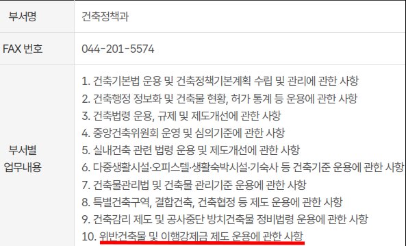 피의자: 김도형, 국토교통부 국토도시실 건축정책관 건축정책과(044-201-3757)