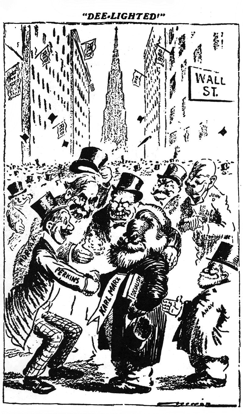 Cartoon by Robert Minor in St. Louis Post-Dispatch (1911). Karl Marx surrounded