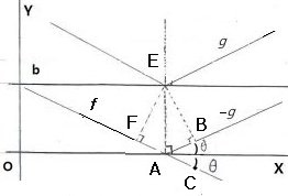 (2) 그림으로부터, -$g$는 A를 축으로 $f$를 시계 반대방향으로 2$\theta$ 튼 것으로 입사 후 반사하는 빛의 precise 수학식을 나타낸다.