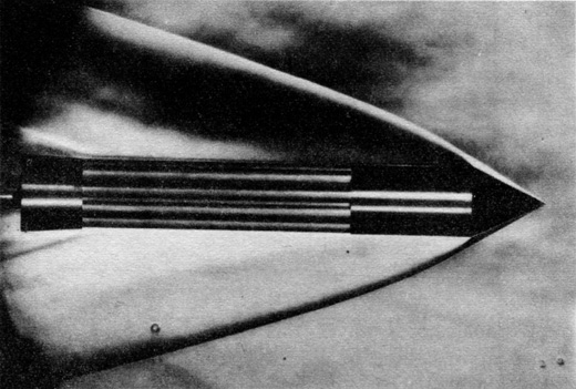 The corresponding circumstances in the case of sound are illustrated in Fig. 51–2, which is a photograph of an object moving through a gas at a speed greater than the speed of sound. The changes in pressure produce a change in refractive index, and with a suitable optical system the edges of the waves can be made visible. We see that the object moving faster than the speed of sound does, indeed, produce a conical wave. But closer inspection reveals that the surface is actually curved. It is straight asymptotically, but it is curved near the apex, and we have now to discuss how that can be, which brings us to the second topic of this chapter.