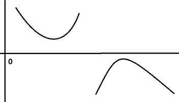 이것을 기하학적으로 풀이하면, $\alpha$ 좌우로 $x$축을 만날 때까지 증가하거나 감소하여야 한다는 것, 즉 아래 왼쪽 그림과 같은 그래프는 불가능하며, 오른쪽 그림과 같이 항상 x 축을 만나야 한다는 것.