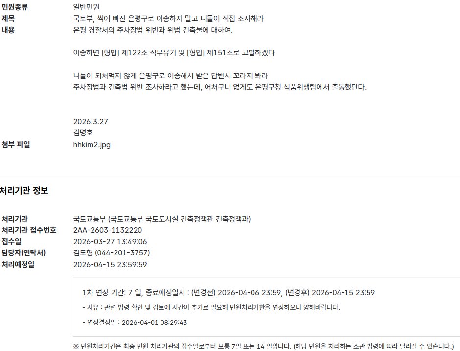 ¿¬Àå »çÀ¯: °ü·Ã ¹ý·É È®ÀÎ ¹× °ËÅä¿¡ ½Ã°£ÀÌ Ãß°¡·Î ÇÊ¿äÇØ ¹Î¿øÃ³¸®±âÇÑÀ» ¿¬ÀåÇÏ¿À´Ï ¾çÇØ¹Ù¶ø´Ï´Ù(=> ó¸® Ã˱¸)