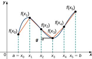 위 그래프 함수를 $x$축 중심으로 돌렸을 때의 회전체의 부피는 사각형 [$g, f(x_3), x_3, x_2$], 표면적은 사다리꼴, [$f(x_2), f(x_3), x_3, x_2$]로 계산한다. 왜?