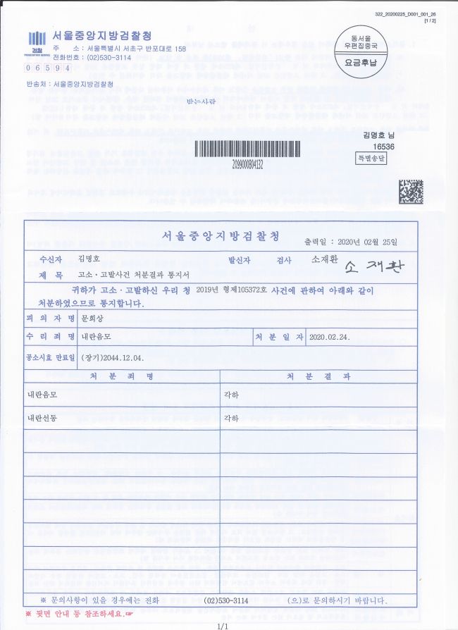 국힘당 권성동 무죄 =>