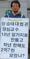 사진/ 사회적 이익을 위하여…. 전교조 조합원들이 한나라당에서 교원정년 연장에 반대하는 농성을 벌이고 있다.(이정용 기자)