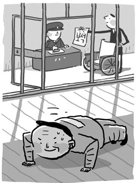 ‘병치료’를 이유로 석방을 요구한 이 이시장은 구치소에서 팔굽혀펴기를 하는 모습이 CCTV에 찍혔다고 <조선일보>가 전했다.