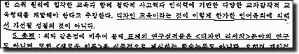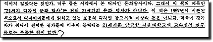 이 분은 김민수 교수가 쓰는 '21세기'라는 말이 무척이나 마음에 안 드나 보다. 이 분이 작성한 두번째 보고서, 즉 <21세기 한국 디자인 교육의 대전제>라는 논문에 대한 보고서의 일부를 보자.