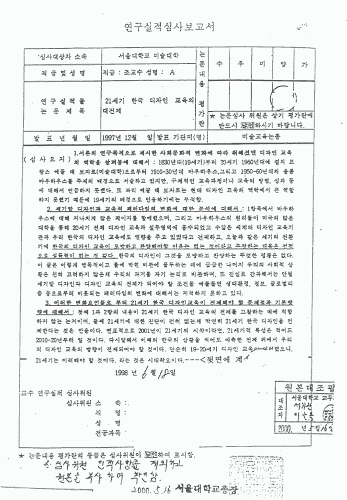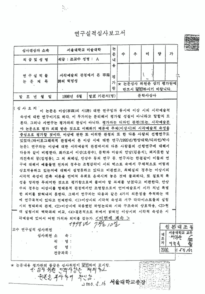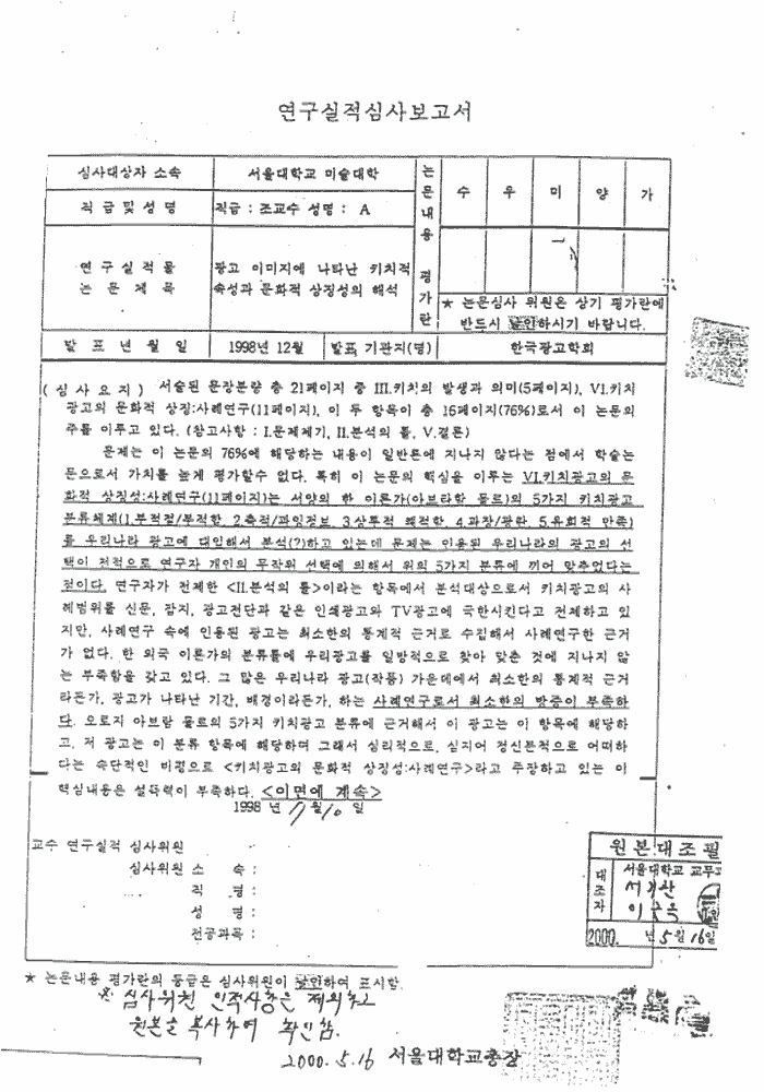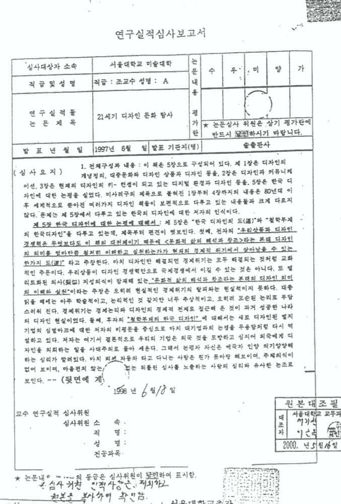 * 저서에 있지도 않은, 5장을 언급한 심사표