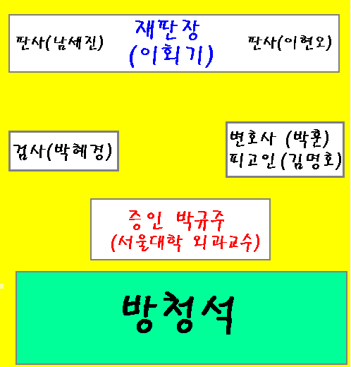 - (이회기 재판장) 박규주씨는 피해자를 진단하고 진단서를 발급한 분이므로 당시 경험한 것만 증언할 수 있다. 그건 기각하겠다.