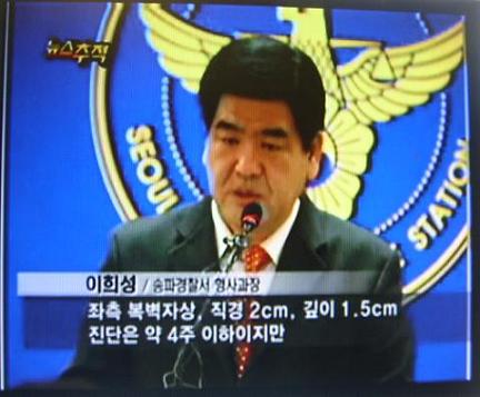 ○ 재봤습니다. 제 손가락 길이로 (박홍우 상처에 손을 대고) 재봤습니다.(*거짓말 위 SBS <뉴스 추적> 동영상 사진을 봐라)