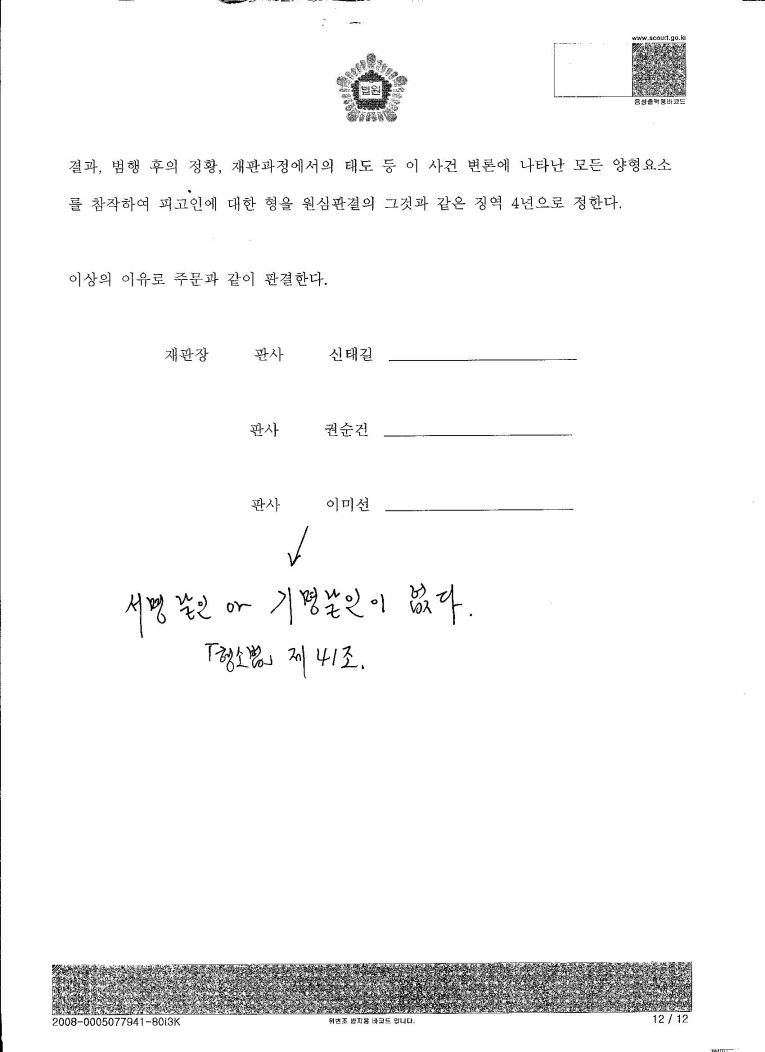 | 최종 형량 | 집행유예 | 4년 징역 |