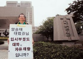 대법원 정문에서 1인시위를 벌이고 있는 김명호 전 성균관대 교수.(사진/ 한겨레21 윤운식