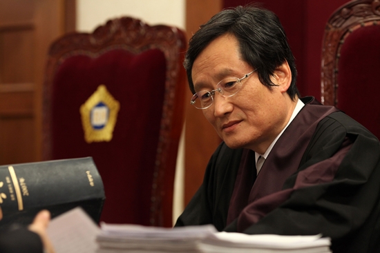 법정에서 나오지 않은 내용으로 항소심 판결문을 채운 신태길 재판장의 영화 속 모습.