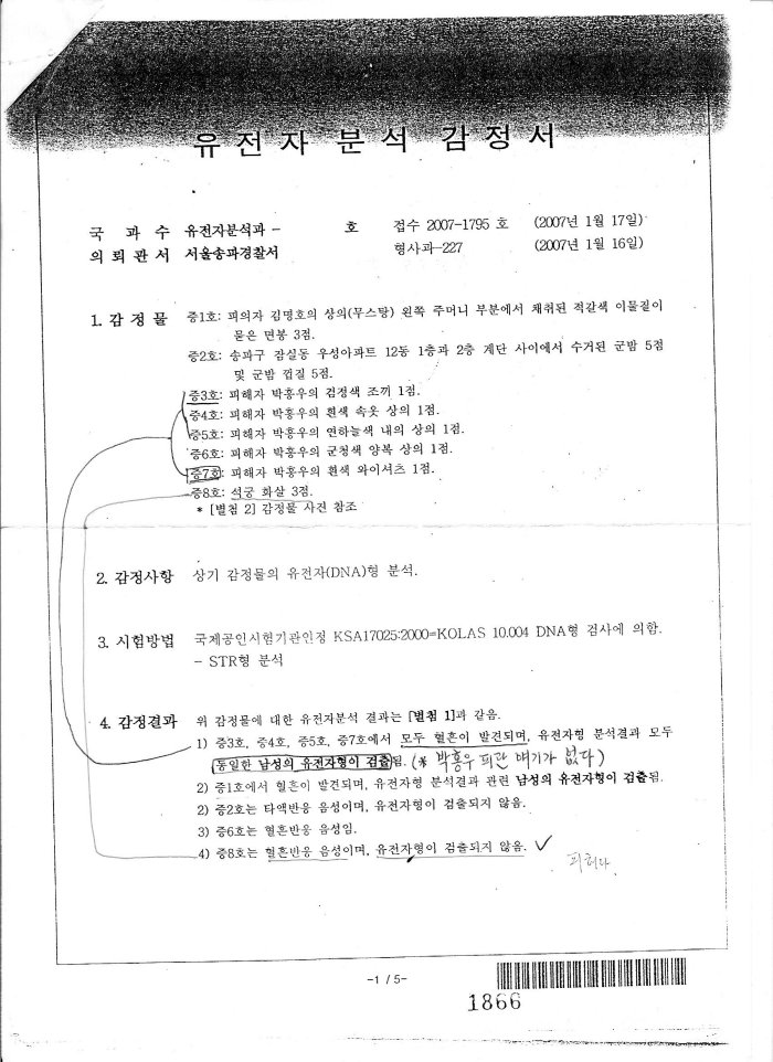 3. 국회의원 7명(강기갑, 곽정숙, 권영길, 유원일,조승수, 최문순, 홍희덕), 교수 44명(김상곤, 최갑수, 김세균등)의 '혈흔 검증 촉구하는 국회의원 7명과 교수 44명의 의견 서명서를 제출 받고도.